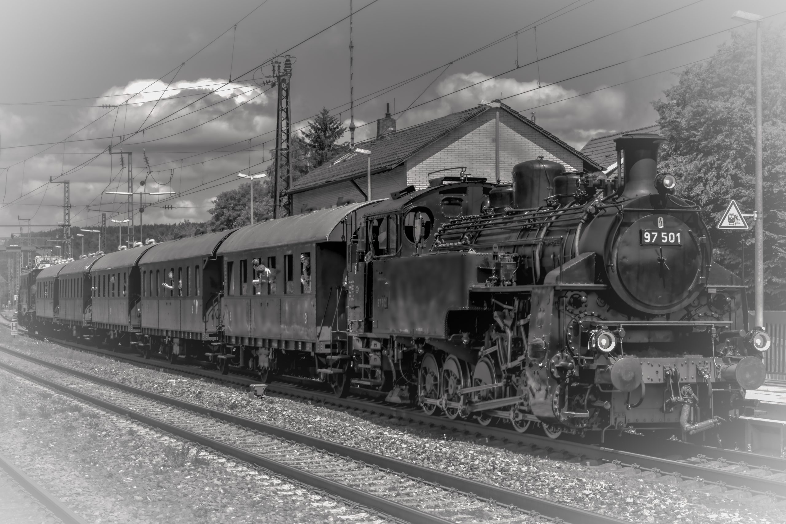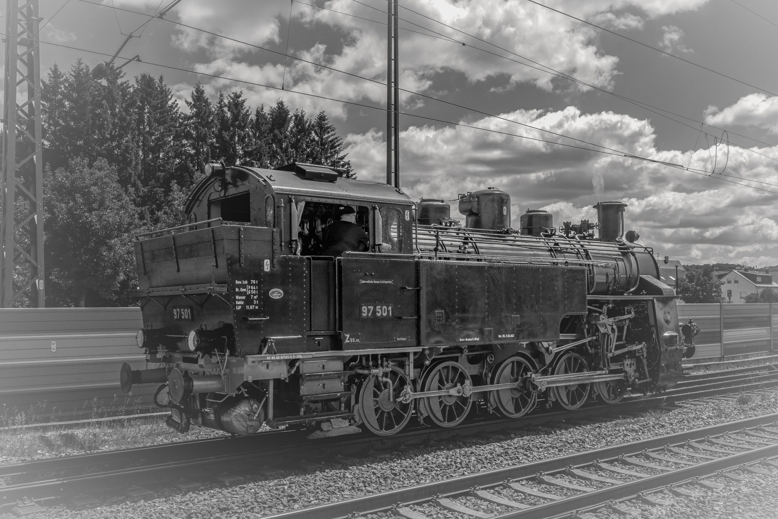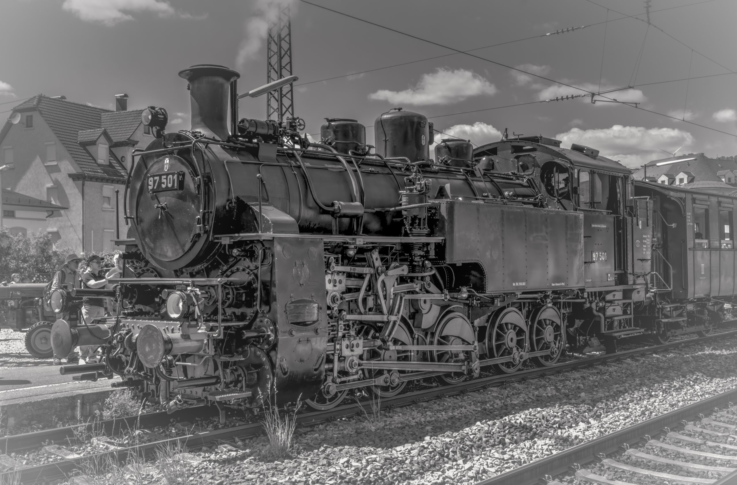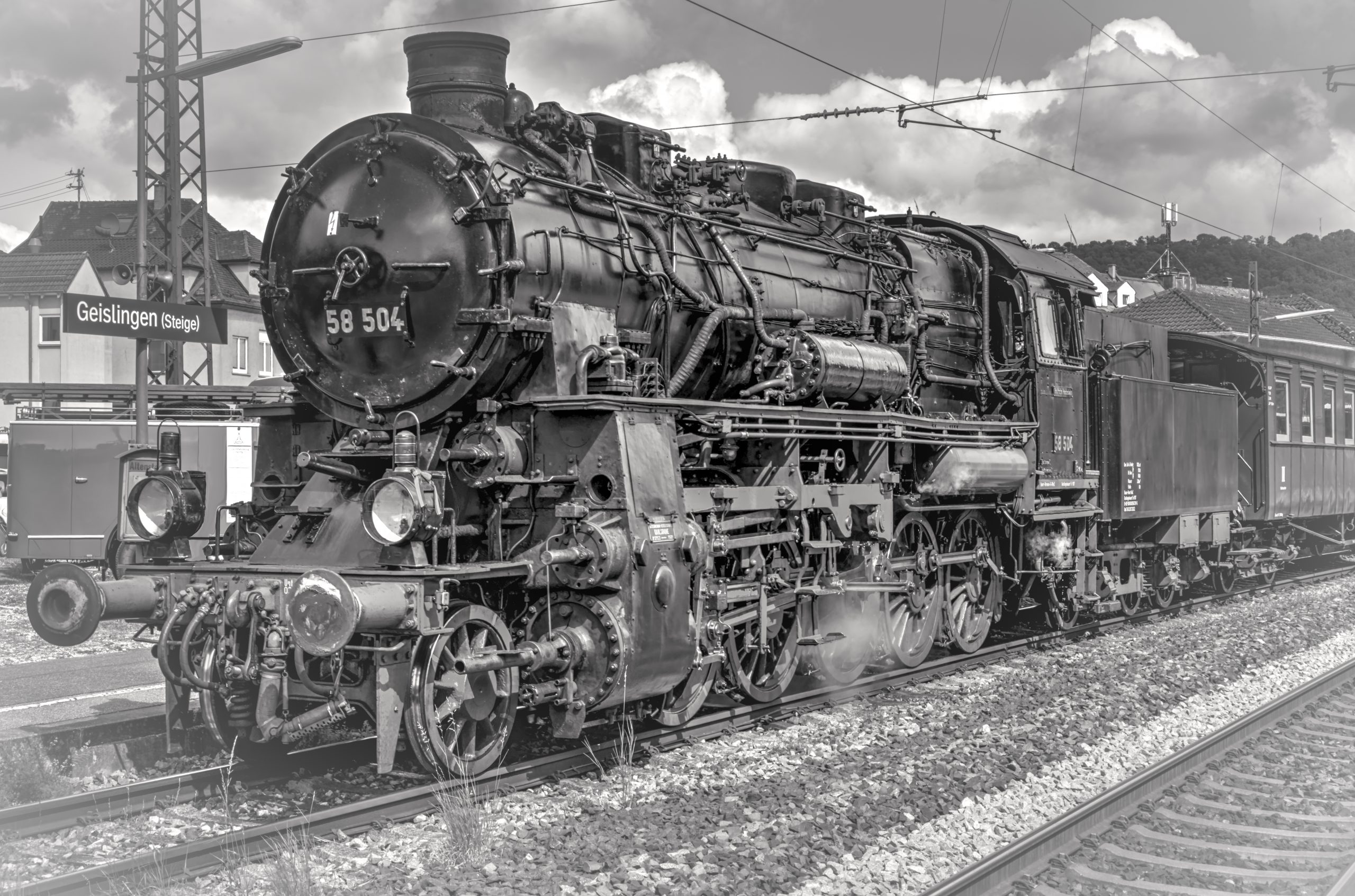 Zum 175-jährigen Bestehen der Geislinger Steige ließen sich die 58 311 des Vereins Ulmer Eisenbahnfreunde e.V. und die 97 501 der ZHL – Freunde der Zahnradbahn Honau-Lichtenstein e.V. aus Reutlingen nicht lange bitten. Heute präsentierte sich die 58er übrigens als 58 504, geschmückt mit länderbahntypischen Stirnlampen. Zwei elegante Reisezüge warteten auf ihre Fahrgäste: einer mit württembergischen Personenwagen vom Kuckucksbähnel, der andere aus Donnerbüchsen zusammengestellt.
